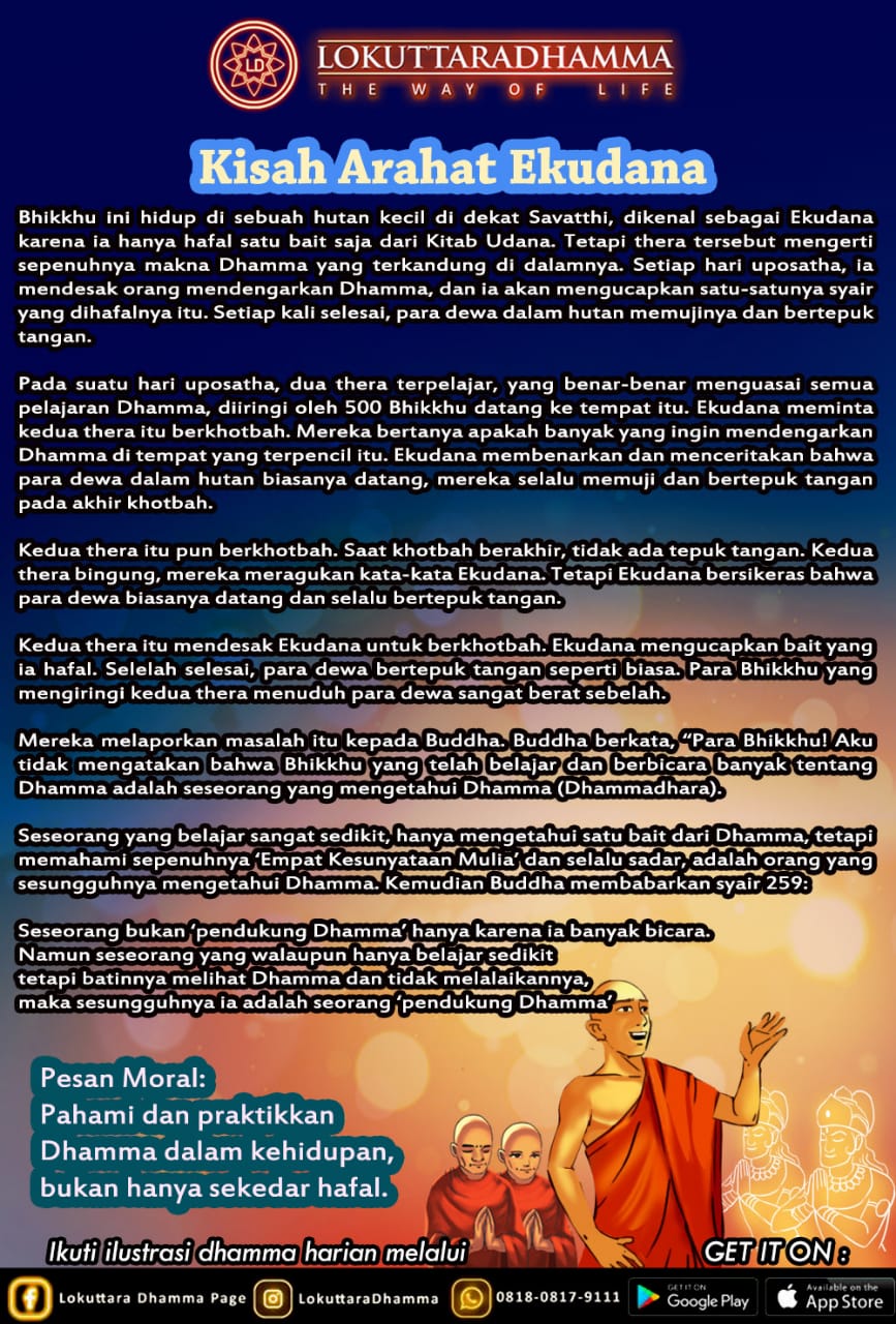 Hendry Filcozwei Jan @hendry-filcozwei-jan Not recently active Activity Profile Friends Groups Blog Forums Posts Dhamma LD (47/49): Kisah Arahat Ekudana Posted on June 3, 2021 Kisah Arahat Ekudana Sumber: Lokuttara Dhamma Source: http://vihara.blogspot.com Share and Enjoy ! Related posts: Dhamma LD (44/49): Khemaka yang tak Dapat Menjaga Sila Dhamma LD (46/49): Kisah Anitthigandha Kumara Dhamma LD (48/49): Kisah Atula, Seorang Umat Awam Dhamma LD (45/49): Kisah Ananda Thera Leave a Reply Cancel replyYour email address will not be published. Required fields are marked *Comment * Name * Email * Website